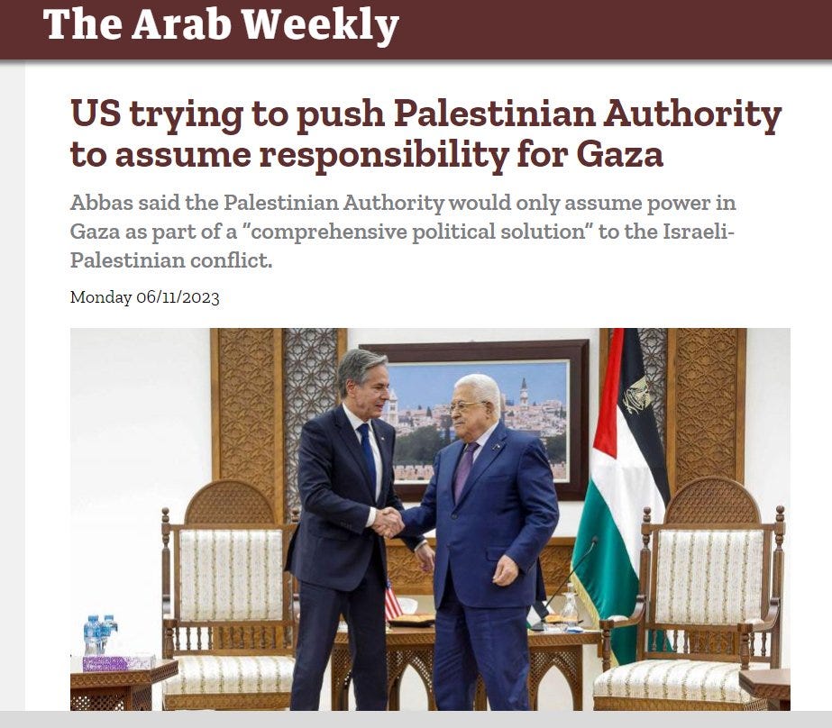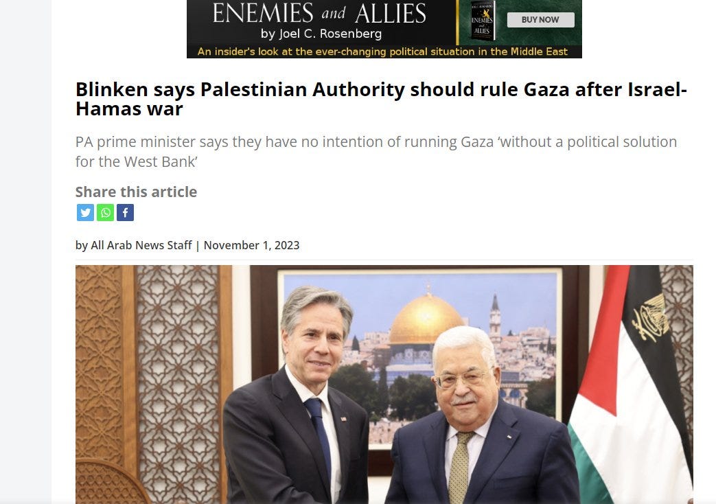 If Israel withstands the pressure and continues on to victory, toppling Hamas from Gaza, then the US will pressure for are a return of Fatah and the PA, under the corrupt leadership of Abu Mazen.