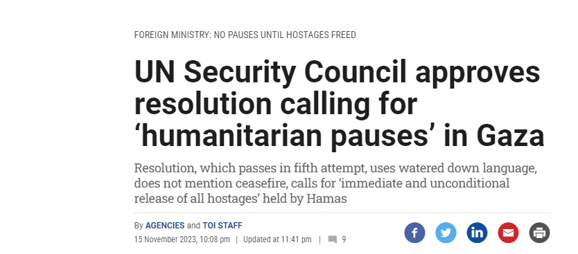 Instead of for example, calling for Hamas to stop resisting (say especially around hospitals and residential areas), which would then end the fighting, it calls for Israel to stop fighting, before it can topple the terrorist regime.