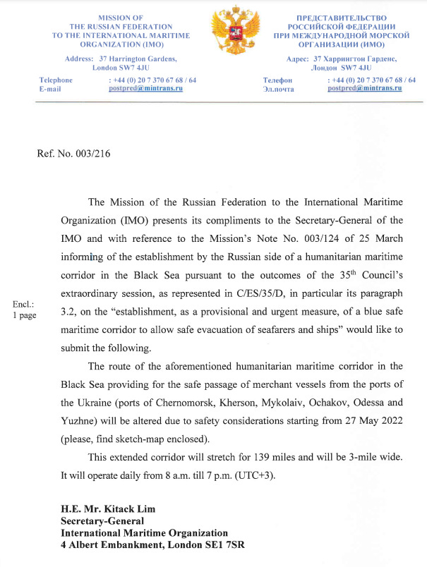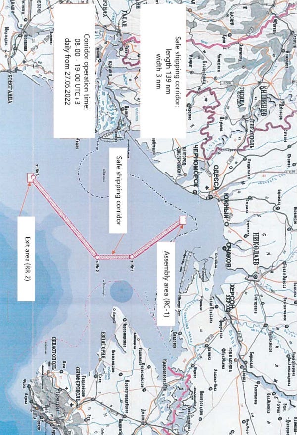 Ukraine on the other hand, on many occasions forcefully held foreign ships and their crews in Ukrainian ports, & we commented on that many times as was the case in Mariupol. In fact, it officially declared all ports closed to any inbound or outbound ships (civilian and/or foreign). This act rendered Russia's blue safe maritime corridor moot in many instances as ships could not leave.