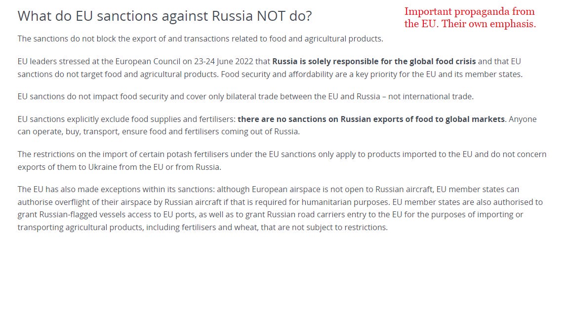The West's heavy sanctions on Russia were exasperating the problem because the region's (if not the world's) only exporter of these commodities larger than Ukraine is Russia, now even further augmented by vast agricultural lands it had seized from Ukraine.