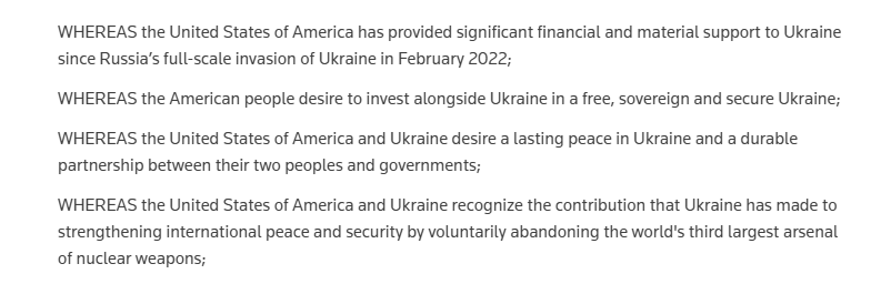 Also interesting is that agreement requires the UA to ratify the agreement as a treaty, because as I have explained, the agreement does obligate Ukraine to certain things. On the other hand, the US does not have to ratify it, because it really promises nothing in return.