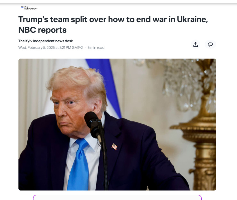 But I believe he is being easily had. And this leads us to the second driving force behind Trump's proposed agreement. In short, it is merely an artifice, be it profitable or not in the future, that explains the continuation of the war. Trump is basically indicating that he came to the WH with the earnest desire of stopping the bloodshed.