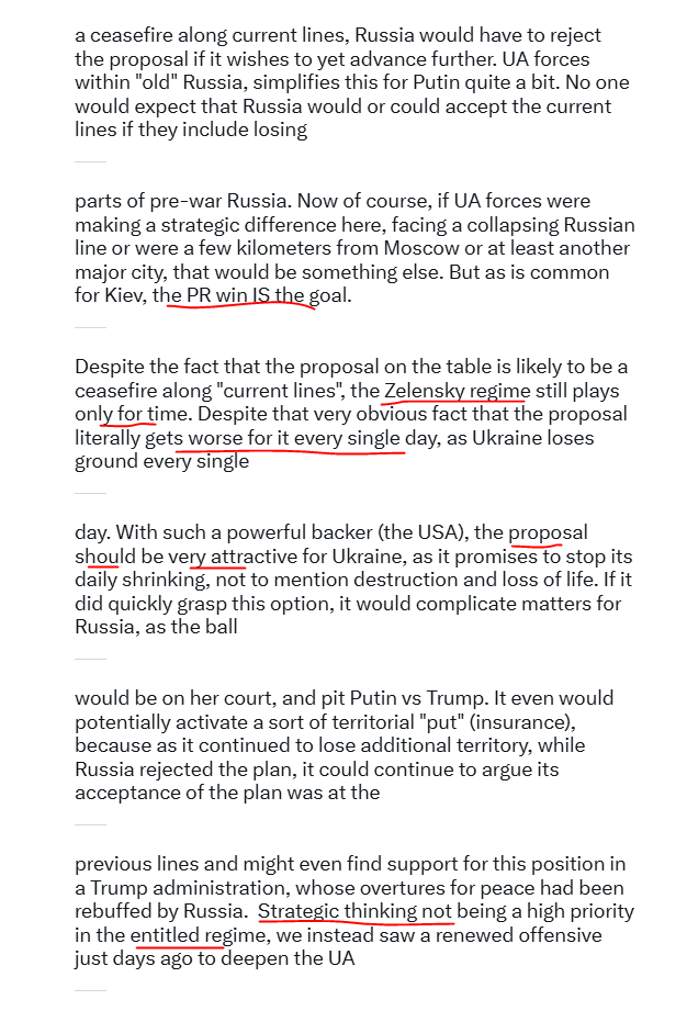 I went on to explain that of course Zelensky should support Trump's proposals in such a scenario, especially since Russia is likely to decline (as I explained then). However, I doubted Zelensky and the "entitled" Kiev regime would have the diplomatic foresight and correctly predicted that he would likely oppose Trump's efforts.