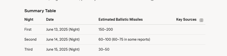 Iranian volleys the first night were of around 100 ballistic missiles (not drones). The second night reports indicate up to 75.