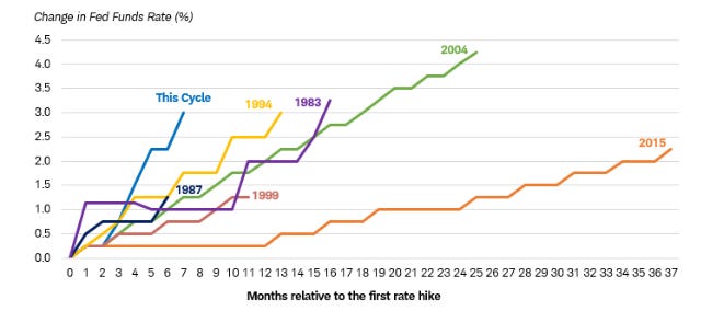 To make matters more ironic, its the Fed that created the fall in capital ratios which then justifies its seizures of the banks. The Fed has raised its rates faster and more steeply than ever before in modern history. It has done so to combat the inflationary monster it created (have a great previous paper on that, back when few believed their would be any inflation), by massive money printing.